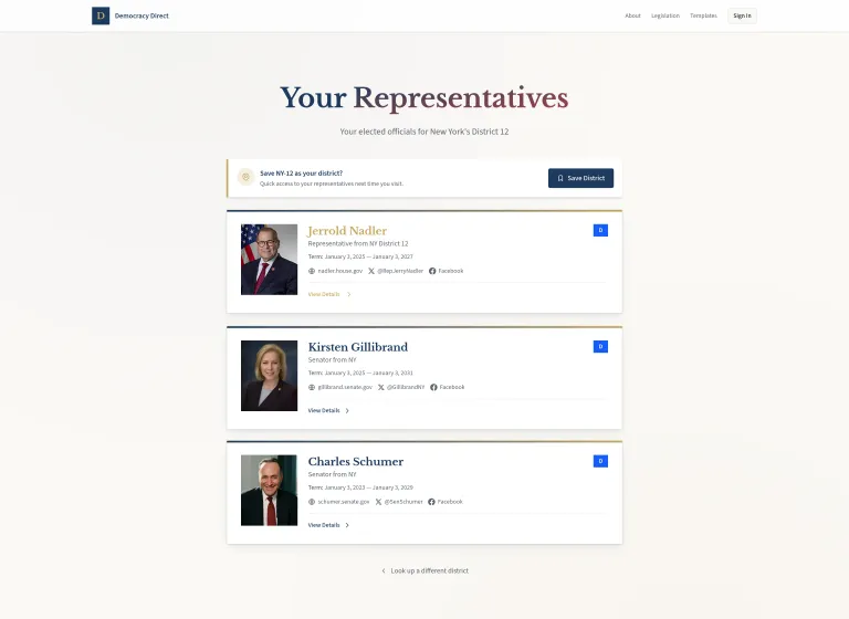 Privacy-first civic engagement. ZIP code lookups happen client-side; emails are hashed before storage.
