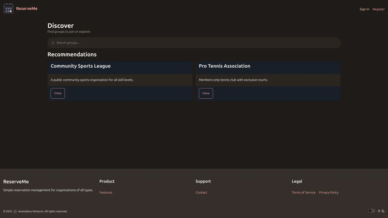 ReserveMe is a general-purpose reservation platform for organizations. Restaurants, studios, coworking spaces, equipment rental shops, anything that takes bookings. It’s live at reserve-me.space.